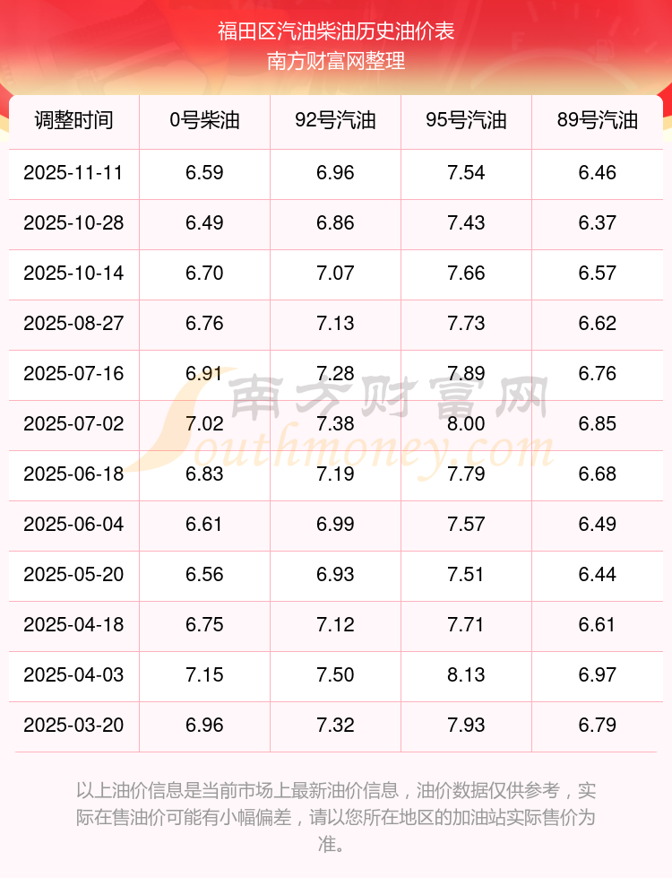 2025年福田區(qū)油價調(diào)整時間表