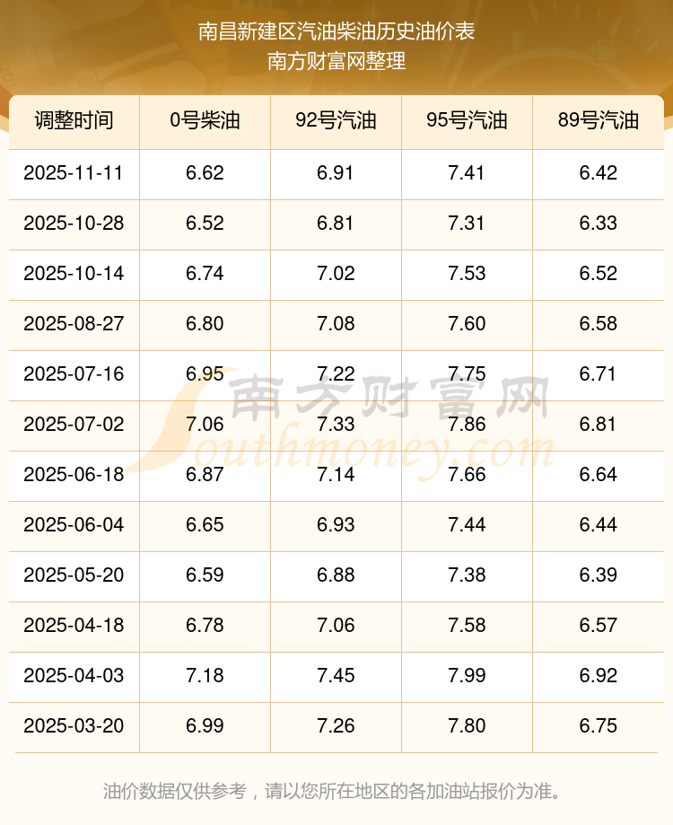 2025年南昌新建區(qū)汽油價(jià)格一覽表