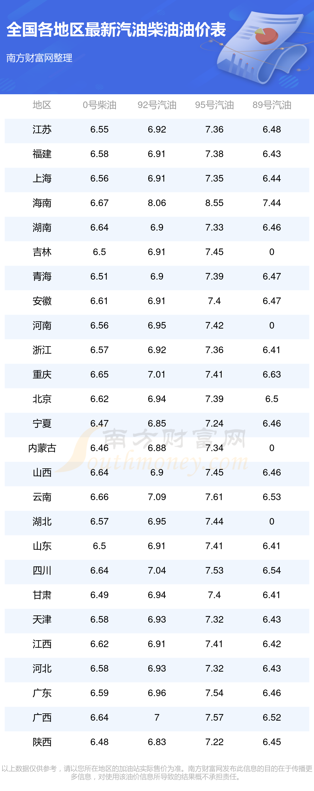 2025年11月12日全國各地油價調(diào)整及最新汽油價格表