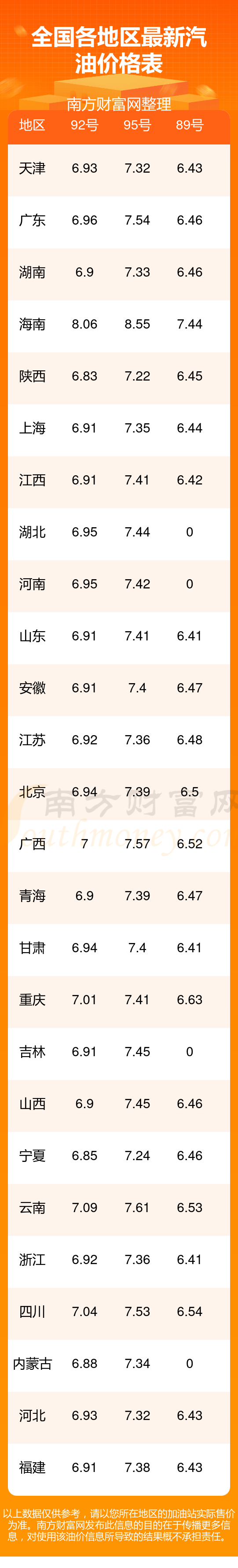 2025年11月12日全國油價調(diào)整及最新汽油價格表