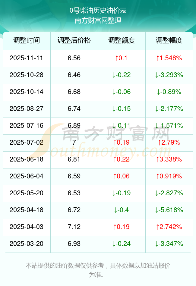 11月12日汽油價格詳情:92號汽油6.95元;95號汽油7.42元;0號柴油6.56元(該價格為11月11日調(diào)整后的價格)。下一輪油價調(diào)整時間11月24日24時,距離現(xiàn)在還有12.36天。