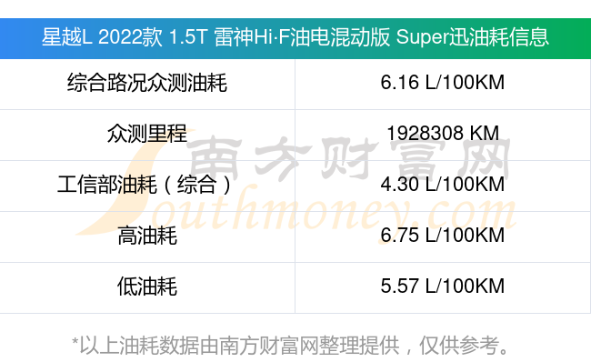 根據(jù)車主實(shí)測數(shù)據(jù),該車型低油耗為5.57升每百公里,高油耗為6.75升每百公里,綜合路況眾測油耗為6.16升每百公里,工信部綜合油耗為4.30升每百公里。