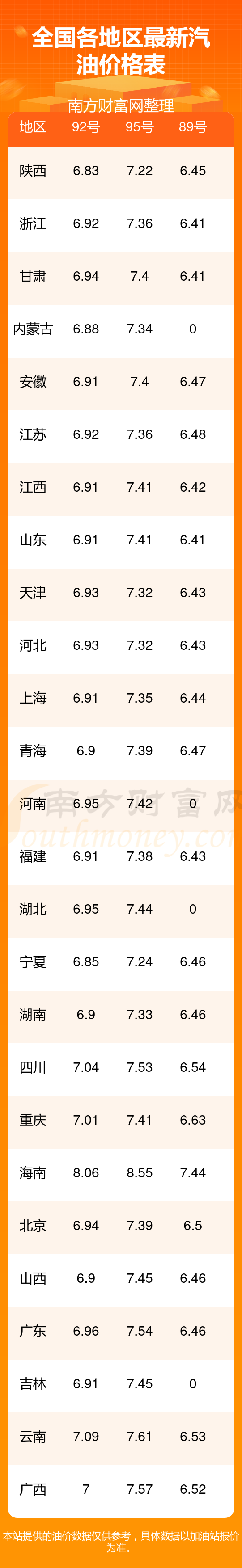 以上油價信息是當前市場上最新油價信息,油價數(shù)據(jù)僅供參考,實際在售油價可能有小幅偏差,請以您所在地區(qū)的加油站實際售價為準。