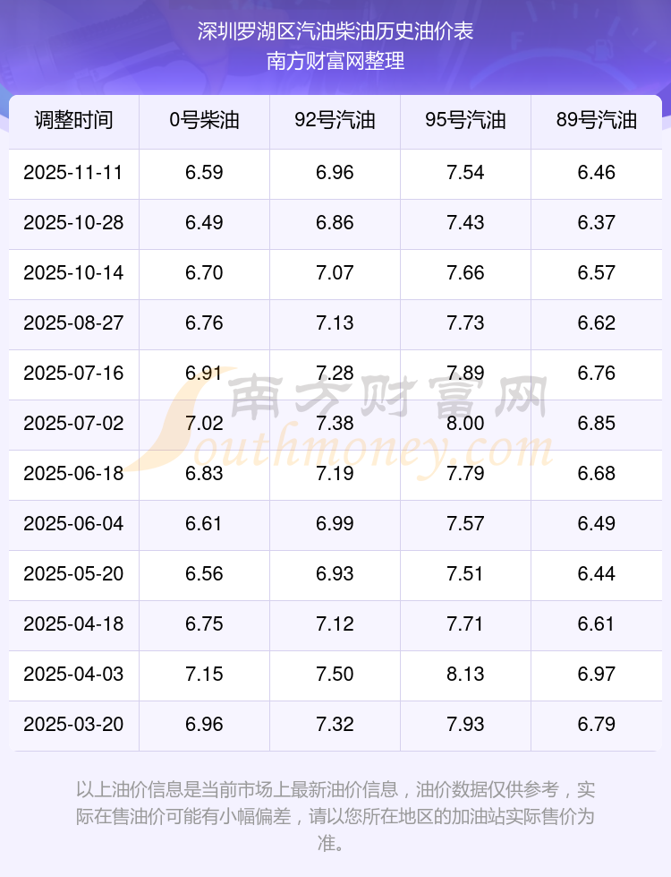 2025年深圳羅湖區(qū)汽油價(jià)格一覽表