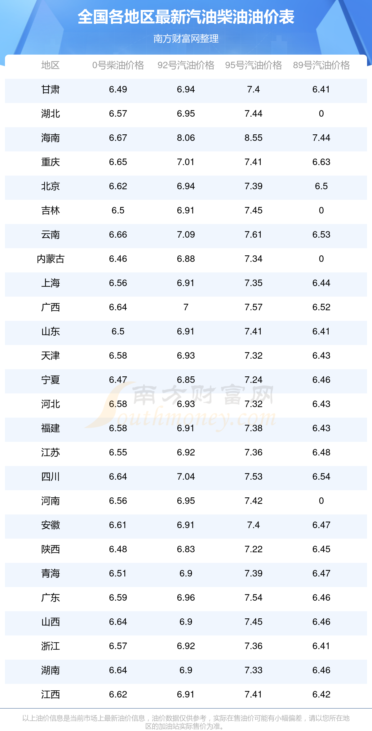 11月12日今日92號(hào)95號(hào)98號(hào)汽油價(jià)格