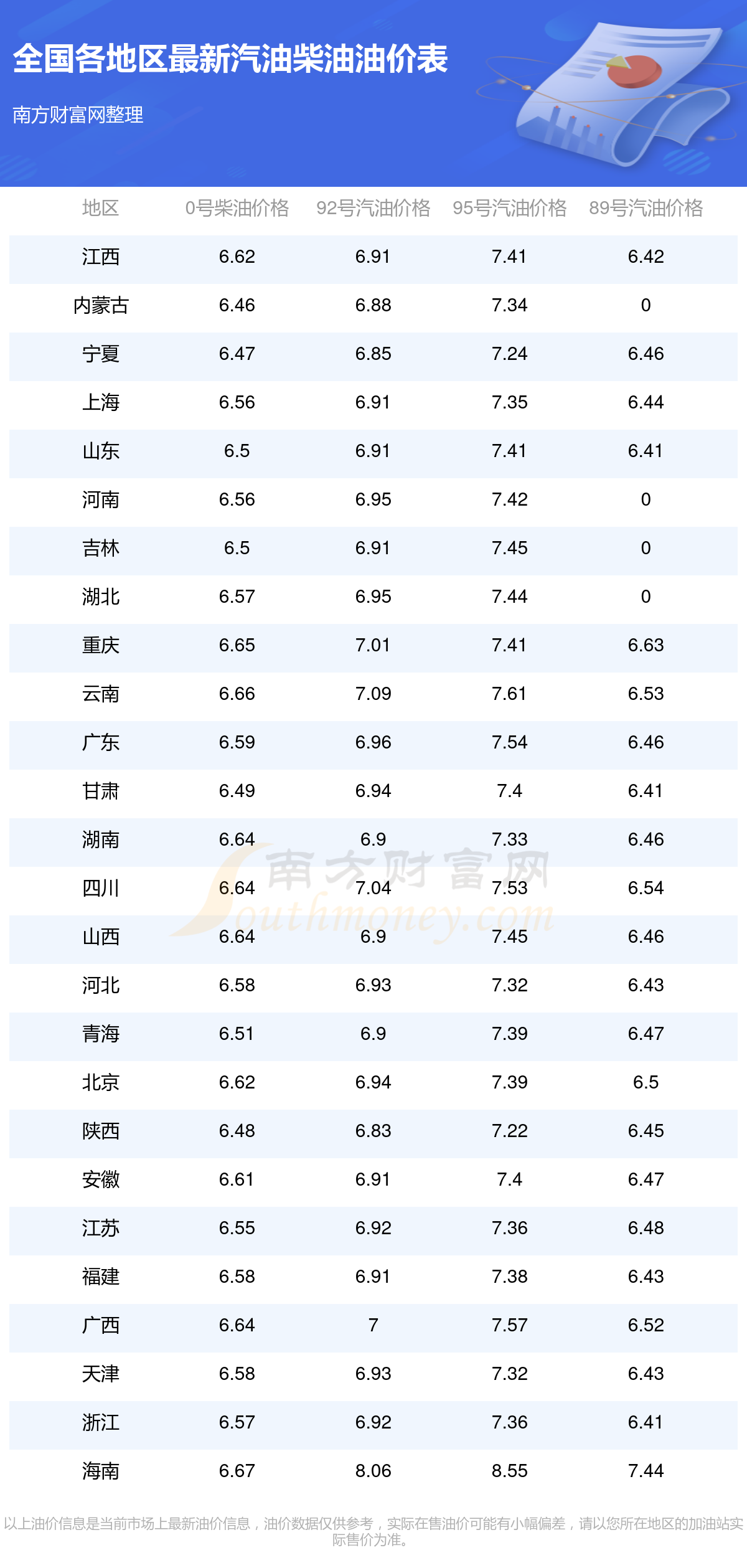 2025年全國(guó)各地區(qū)最新油價(jià)表