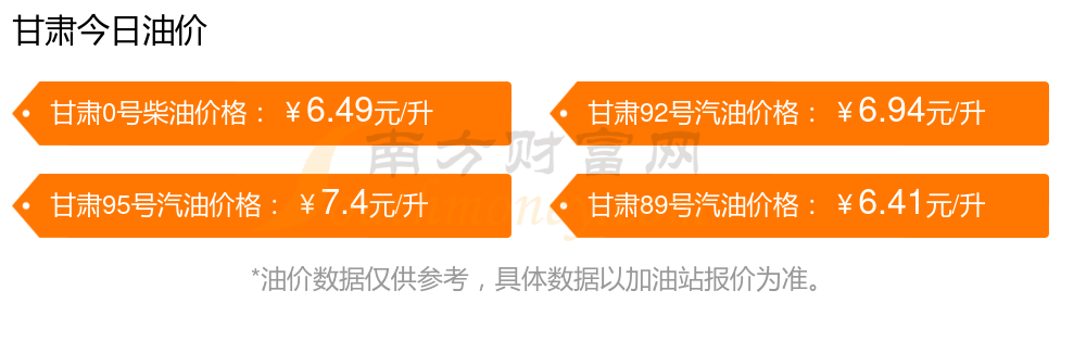 甘肅定西汽油、柴油11月12日每升的價格(油價調(diào)整時間11月11日):92號汽油6.94元;95號汽油7.4元;89號汽油6.41元;0號柴油6.49元。