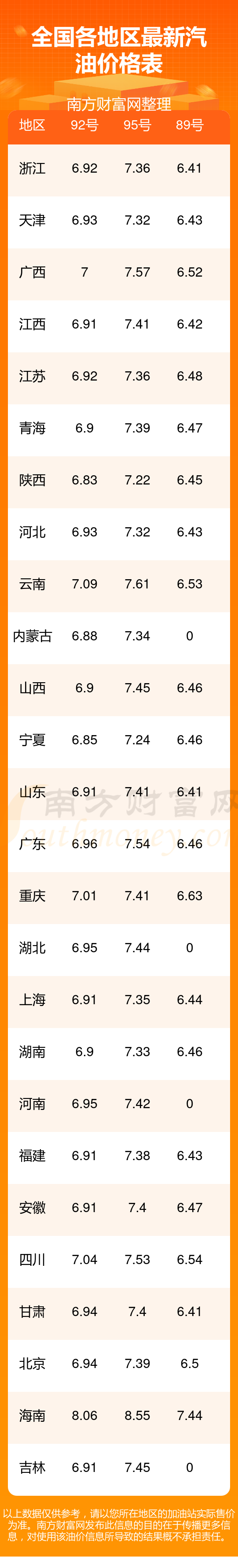 2025年11月12日全國油價調(diào)整及最新汽油價格表