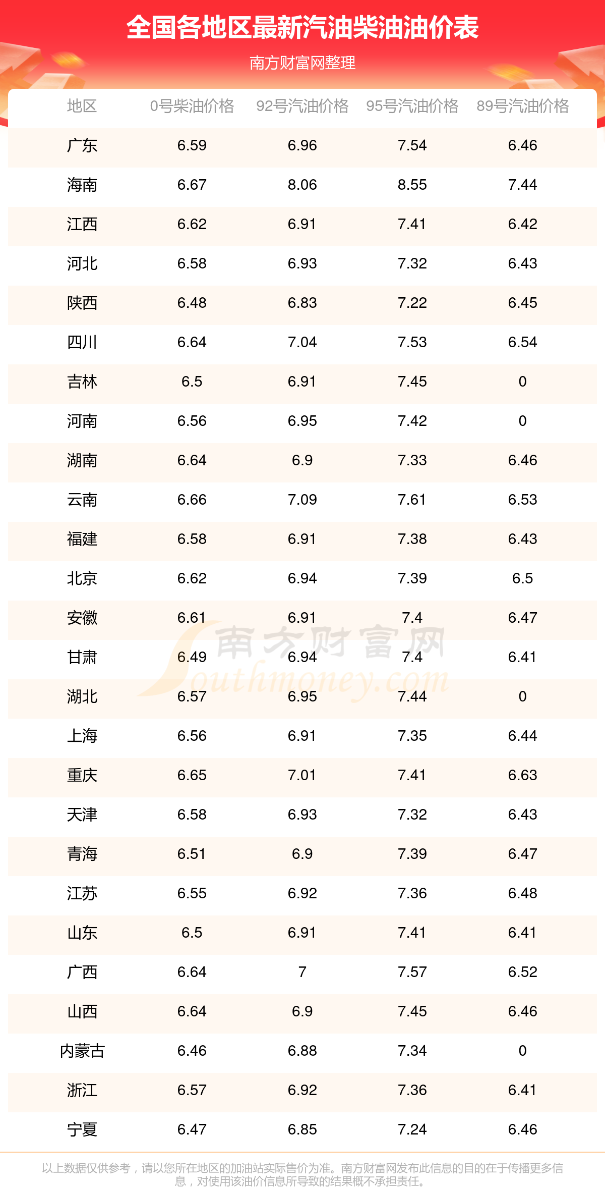11月12日全國各地汽油今日油價(jià)多少錢