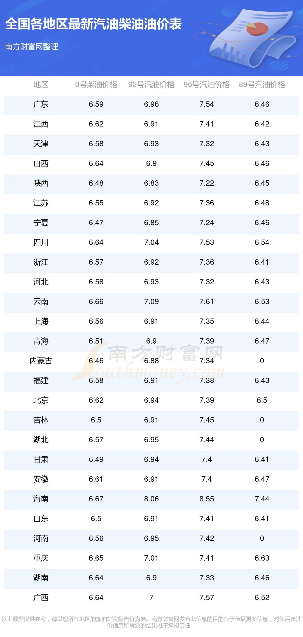 2025年全國各地區(qū)最新油價表