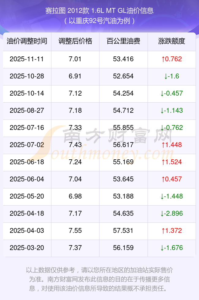 數據僅供參考,實際油耗可能有小幅偏差,請以實際油耗為準。