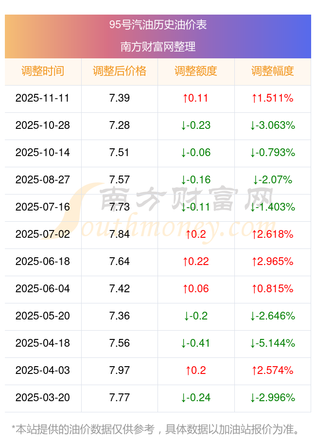 2025年油價(jià)調(diào)整時(shí)間表及價(jià)格