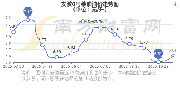 11月12日,安徽0號柴油的價格是6.61元每升,本次的調(diào)整時間為11月11日,對比上次的調(diào)整漲了0.1元,漲1.536%,下次調(diào)整時間為11月24日24時,還有12.28天。