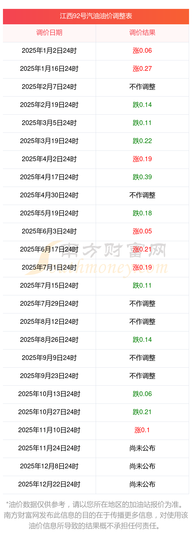 油價數(shù)據(jù)僅供參考,請以您所在地區(qū)的加油站報價為準(zhǔn)。南方財富網(wǎng)發(fā)布此信息的目的在于傳播更多信息,對使用該油價信息所導(dǎo)致的結(jié)果概不承擔(dān)任何責(zé)任。