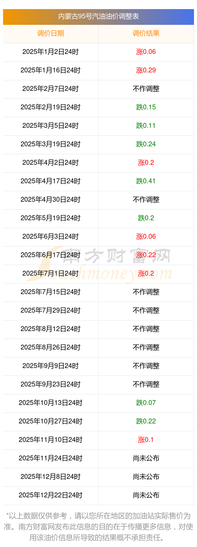 2025年內(nèi)蒙古最新汽油價格調(diào)整一覽表