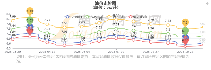 西雙版納95號(hào)汽油11月12日的價(jià)格為每升7.61元,本次油價(jià)的調(diào)整時(shí)間11月11日,對(duì)比上次油價(jià)調(diào)整時(shí)間10月28日的價(jià)格7.5元/升,共上升了0.11元,上升幅達(dá)1.467%。下一輪油價(jià)調(diào)整時(shí)間11月24日24時(shí),距離現(xiàn)在還有12.27天。