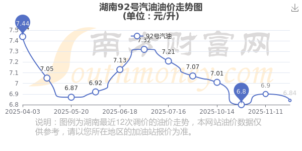 12月3日湖南汽油、柴油的最新價(jià)格是11月25日調(diào)整后的價(jià)格,具體為92號汽油6.84元,下跌了0.06元,下跌幅達(dá)0.81%;95號汽油7.27元,下跌了0.06元,下跌幅達(dá)0.81%;89號汽油6.41元,下跌了0.05元,下跌幅達(dá)0.81%;0號柴油6.59元,下跌了0.06元,下跌幅達(dá)0.84%。