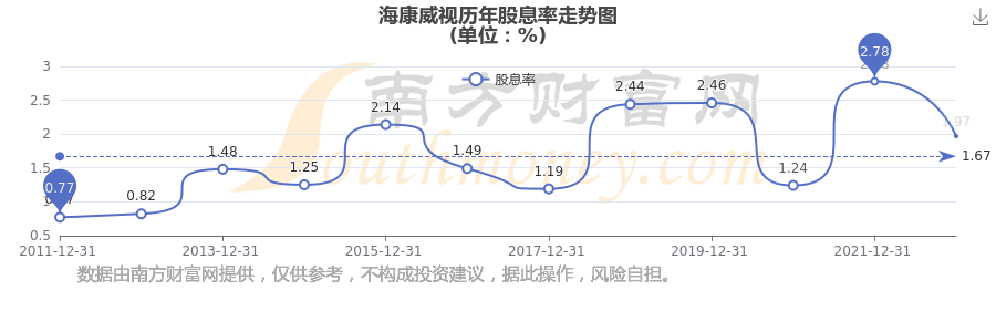 ??低暁v年股息率走勢(shì)如下圖: