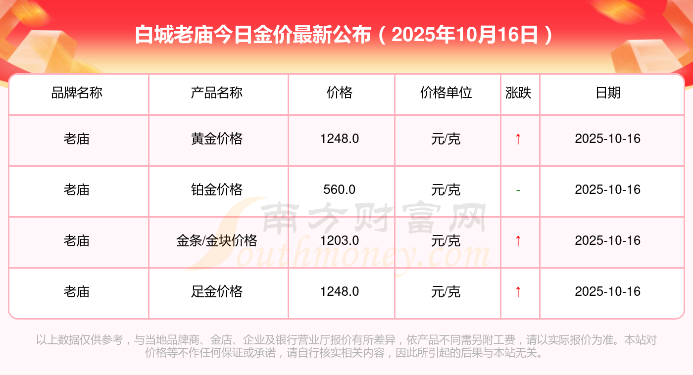 白城老廟目前金價(jià)多少錢一克?2025年10月16日