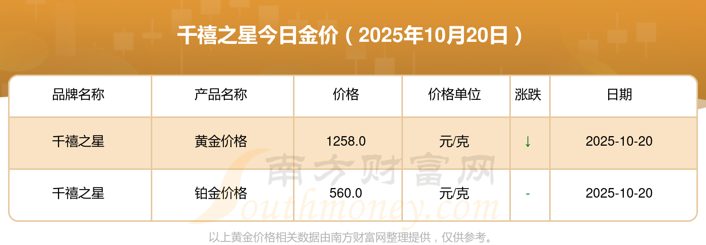 現在黃金多少錢一克_千禧之星金價今天什么價格?(2025年10月20日)