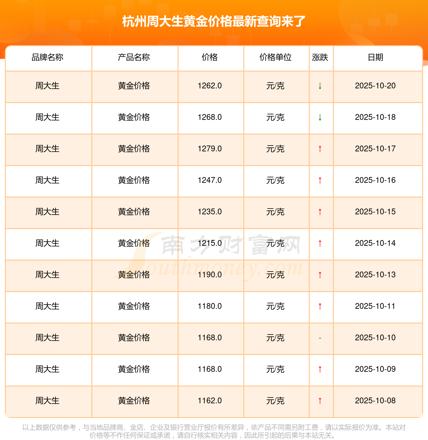 杭州周大生今日黃金價(jià)格查詢來(lái)了(2025年10月20日)