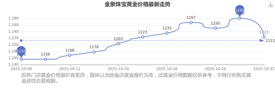 今日金象珠寶 黃金價格的最新定價為1223.0元/克。