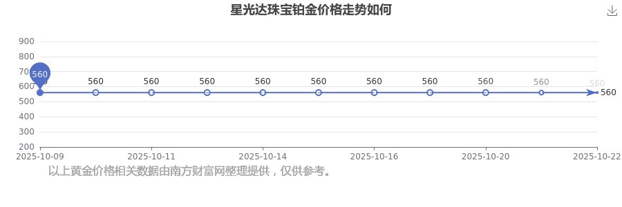 今日星光達(dá)珠寶鉑金價(jià)格最新為560.0元/克。