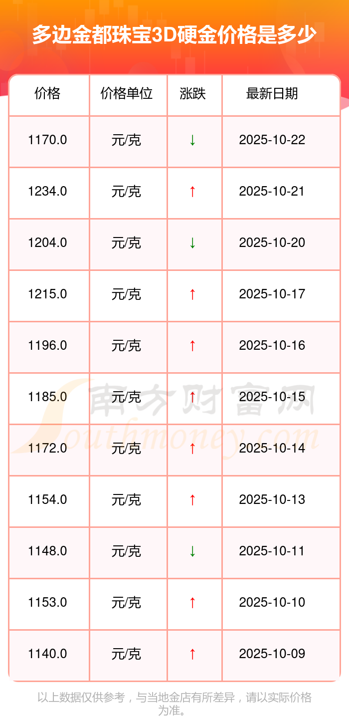 多邊金都珠寶今日3D硬金多少錢一克?3D硬金價(jià)格表公布啦(2025年10月23日)