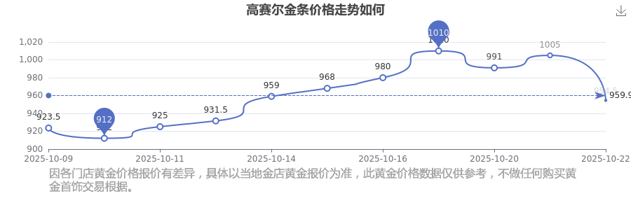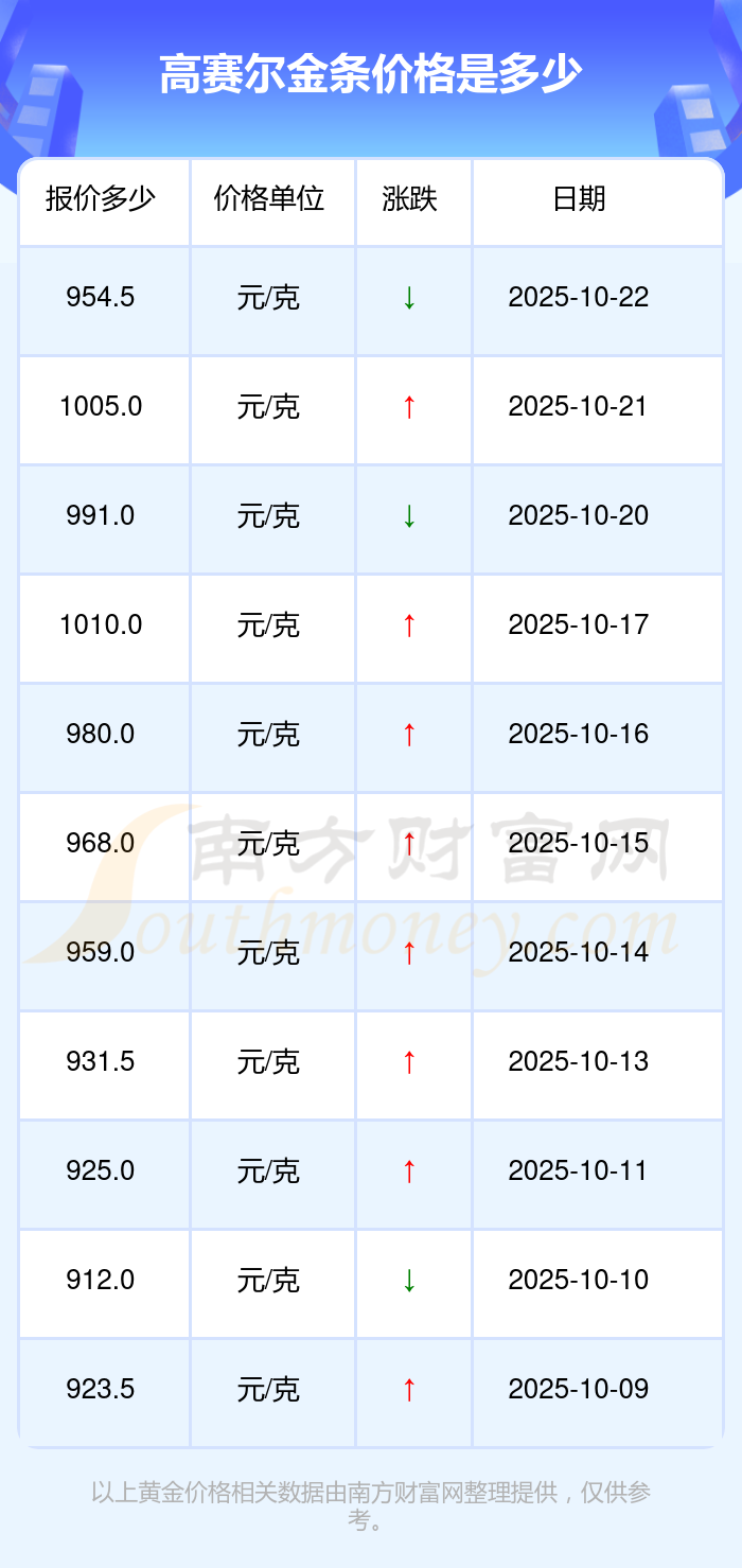 高賽爾現(xiàn)在金條價(jià)格每克是多少?最新高賽爾金條價(jià)格查詢(2025年10月23日)