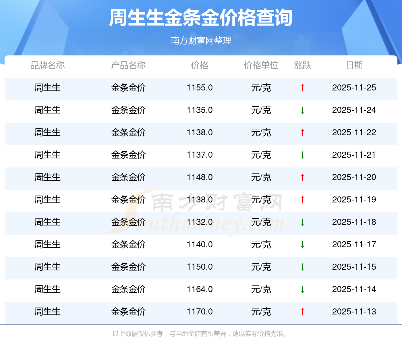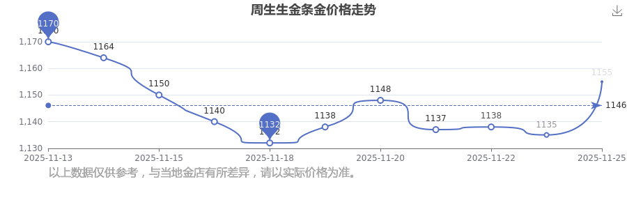 今日周生生金條金價(jià)格最新是1155.0元/克。