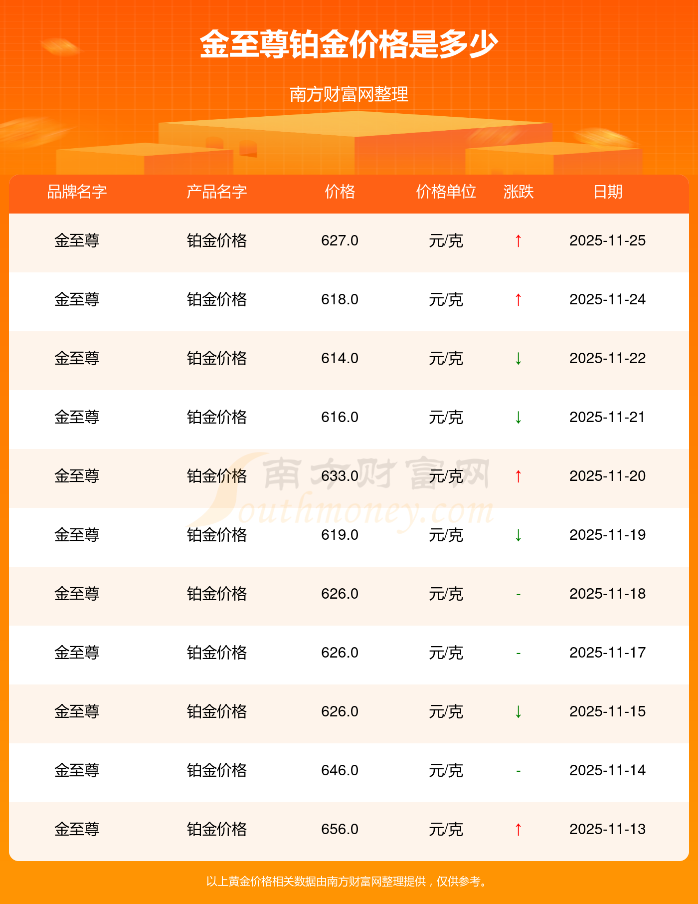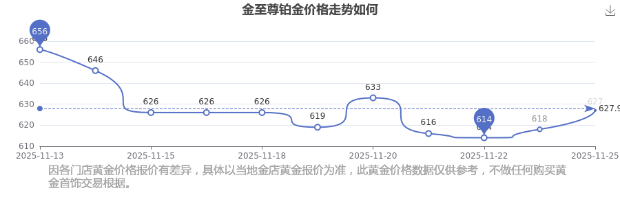 金至尊今日鉑金價格的最新標(biāo)價為627.0元/克。