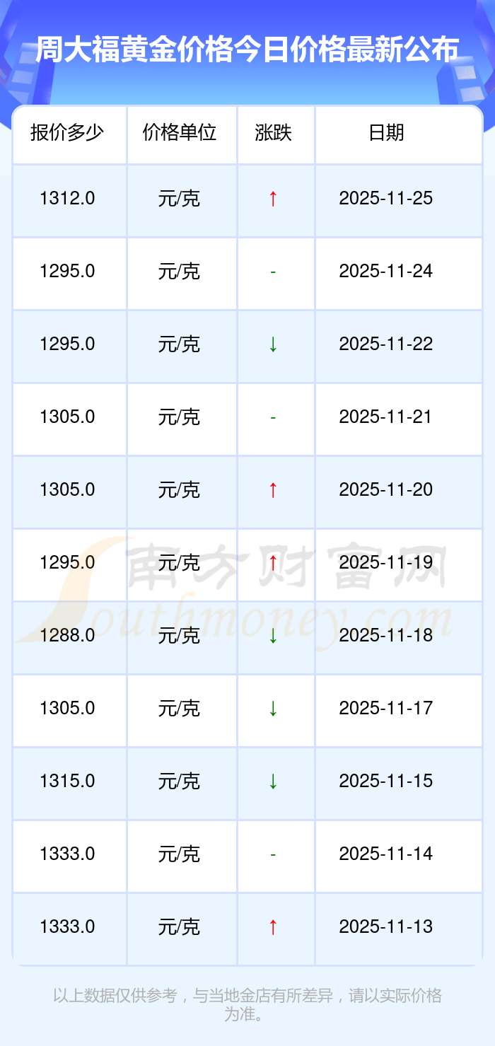 今日黃金價格表_周大福2025年黃金價格多少錢一克,一起來看看吧!