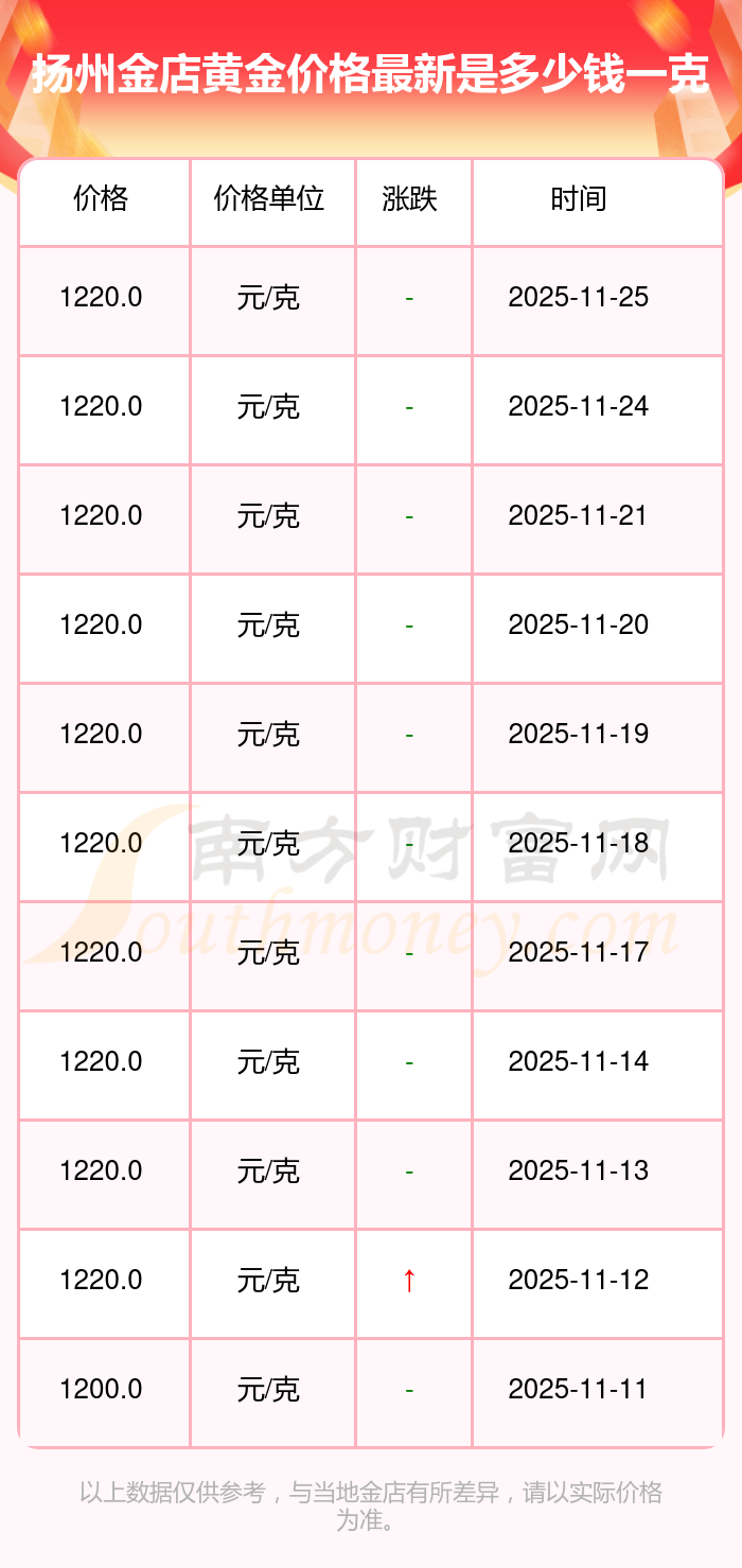今日揚州金店 黃金價格最新的市場標價為1220.0元/克。