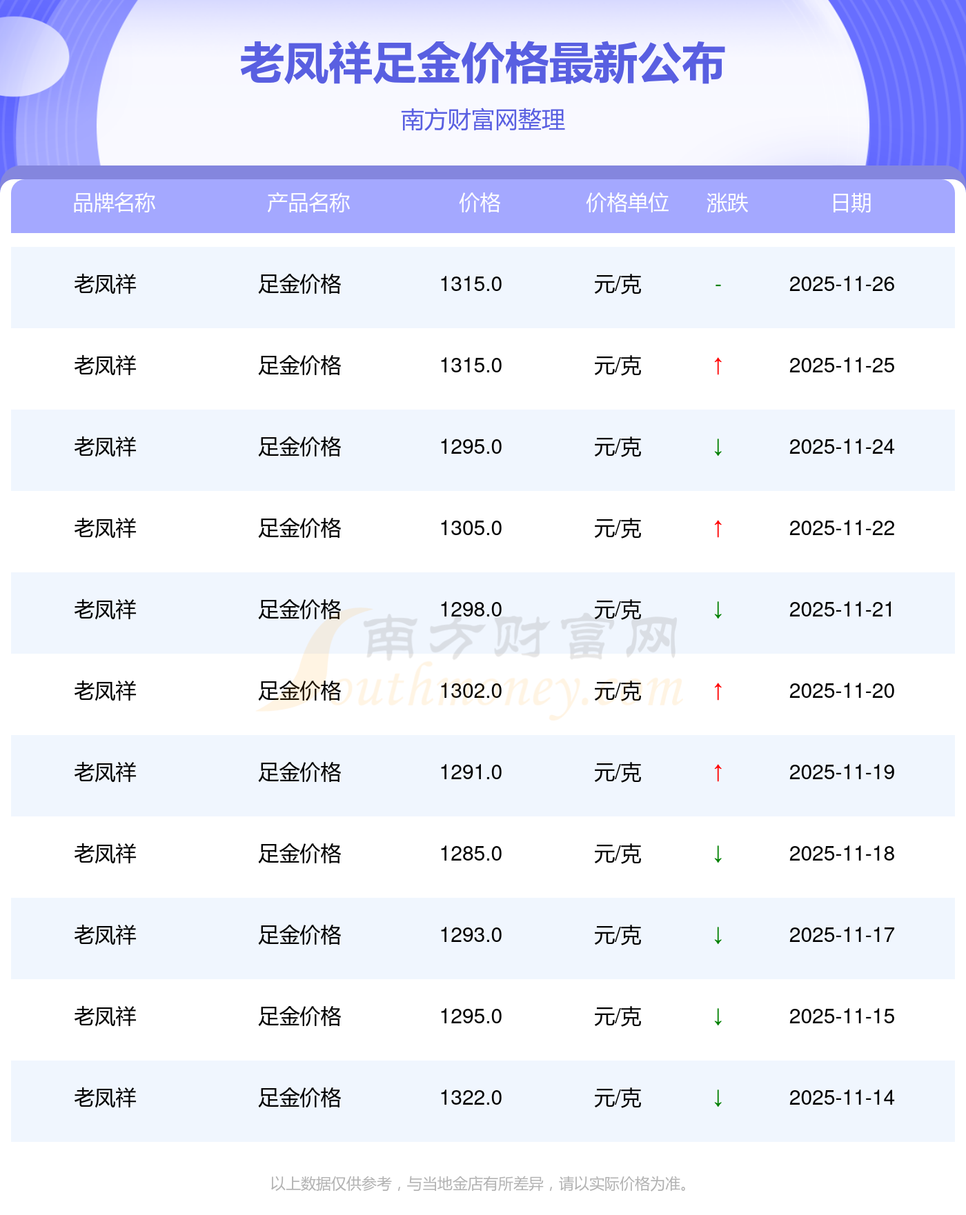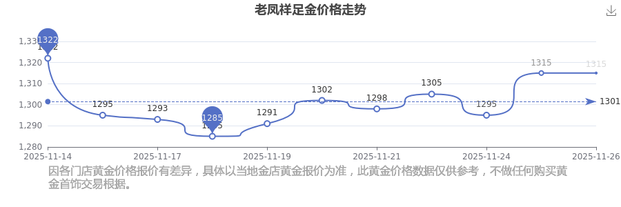 今日老鳳祥所公布的 足金價(jià)格最新價(jià)格為1315.0元/克。