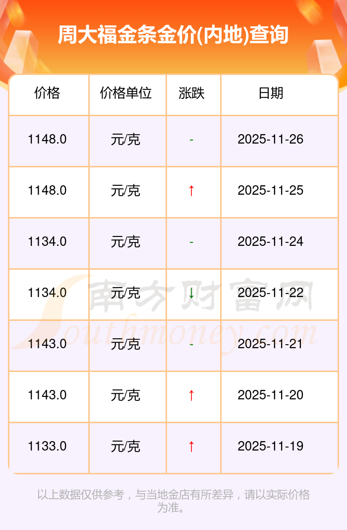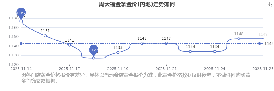 1148.0元/克成為周大福今日 金條金價(jià)(內(nèi)地)的最新交易的價(jià)格。