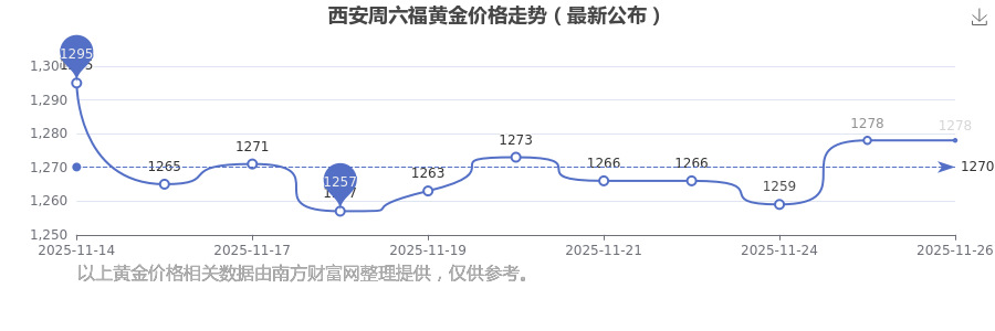 西安周六福黃金價格每克多少錢,請問今日一克黃金的零售價格是多少?今日西安周六福黃金價格查詢,今日(2025年11月26日)西安周六福黃金價格:1278.0元/克。