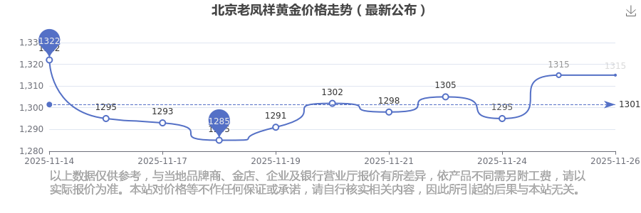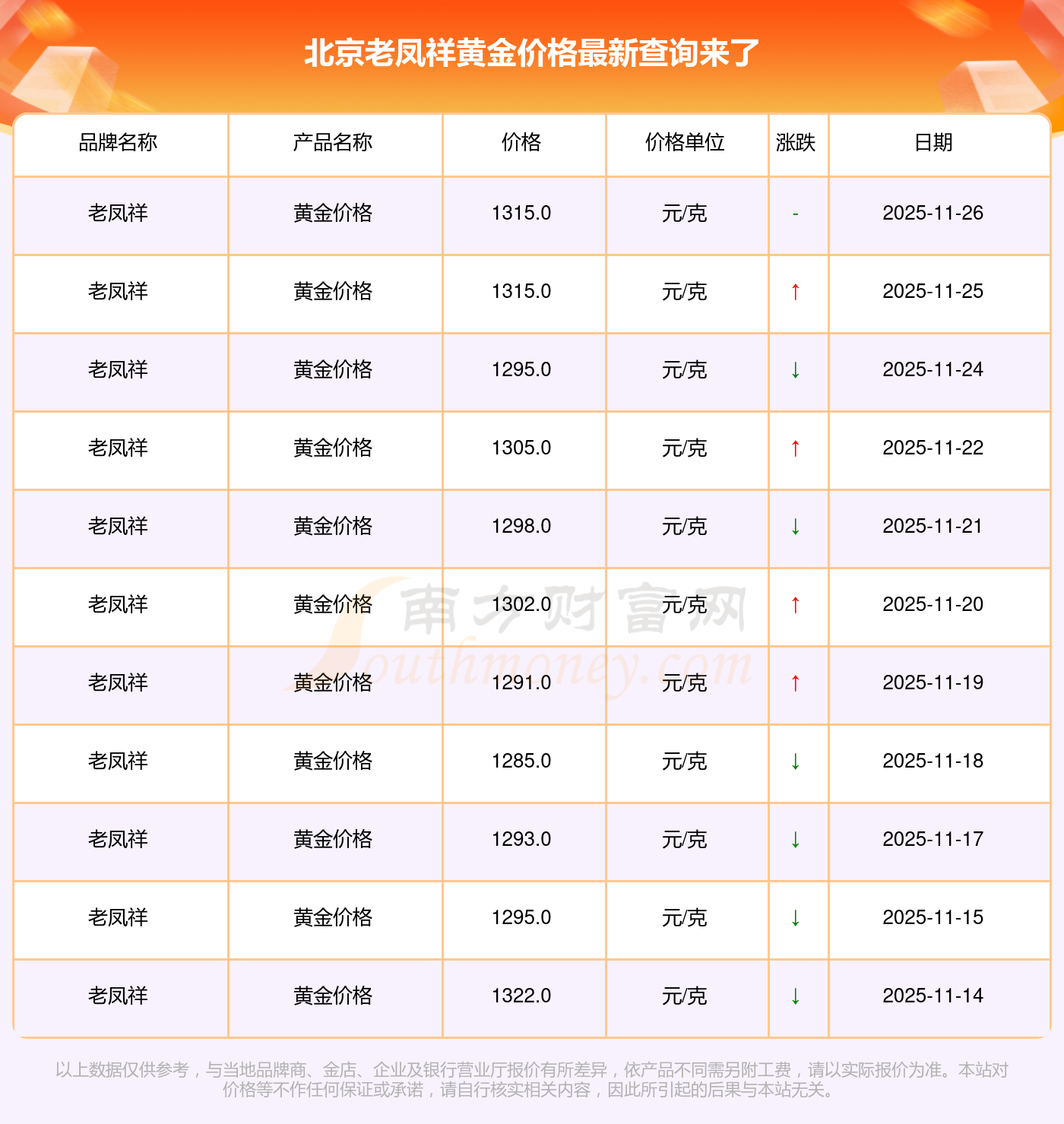 2025年11月26日當天,北京老鳳祥黃金價格的單價是 1315.0元/克。