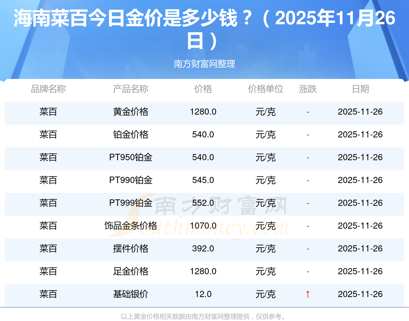 2025年11月26日海南菜百現(xiàn)在黃金一克要多少錢:金條金價(jià)(內(nèi)地)1155.0元/克,黃金價(jià)格1312.0元/克,鉑金價(jià)格624.0元/克,黃金價(jià)格1312.0元/克,鉑金價(jià)格624.0元/克,黃金價(jià)格1315.0元/克,鉑金價(jià)格600.0元/克,黃金價(jià)格1258.0元/克,鉑金價(jià)格368.0元/克,黃金價(jià)格1149.0元/克,鉑金價(jià)格489.0元/克。