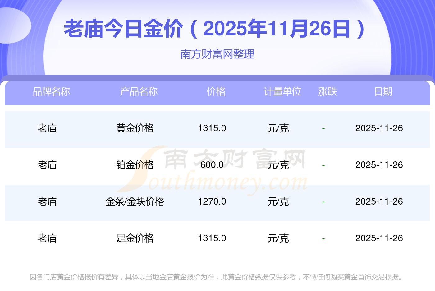 2025年11月26日,周生生、潮宏基、潮宏基、周大生、周大生、亞一金店、亞一金店、寶慶銀樓、寶慶銀樓、太陽金店、太陽金店等各大金店品牌足金價格今日價格如下:周生生1155.0元/克、潮宏基1312.0元/克、潮宏基624.0元/克、周大生1312.0元/克、周大生624.0元/克、亞一金店1315.0元/克、亞一金店600.0元/克、寶慶銀樓1258.0元/克、寶慶銀樓368.0元/克、太陽金店1149.0元/克、太陽金店489.0元/克。
