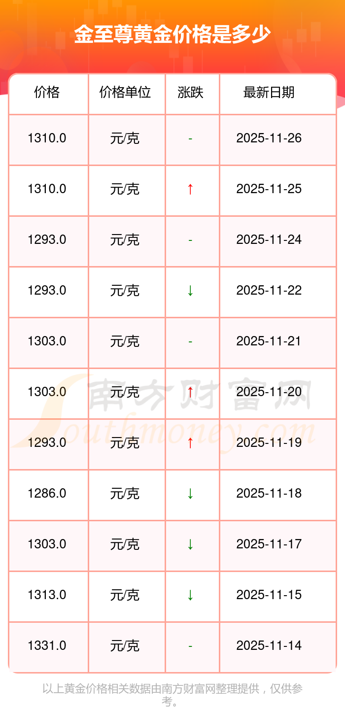 今日黃金價格是怎樣的?當下黃金一克要賣多少錢?一般情況下1克黃金的價格會在多少呢?當下,金至尊 黃金價格今日的最新價格是1310.0元/克。