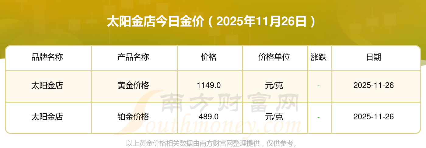 2025年11月26日周生生、潮宏基、潮宏基、周大生、周大生、亞一金店、亞一金店、寶慶銀樓、寶慶銀樓、太陽(yáng)金店、太陽(yáng)金店等各大金店品牌鉑金價(jià)格最新價(jià)格如下:周生生金條金價(jià)(內(nèi)地)1155.0元/克,潮宏基黃金價(jià)格1312.0元/克,潮宏基鉑金價(jià)格624.0元/克,周大生黃金價(jià)格1312.0元/克,周大生鉑金價(jià)格624.0元/克,亞一金店黃金價(jià)格1315.0元/克,亞一金店鉑金價(jià)格600.0元/克,寶慶銀樓黃金價(jià)格1258.0元/克,寶慶銀樓鉑金價(jià)格368.0元/克,太陽(yáng)金店黃金價(jià)格1149.0元/克,太陽(yáng)金店鉑金價(jià)格489.0元/克。