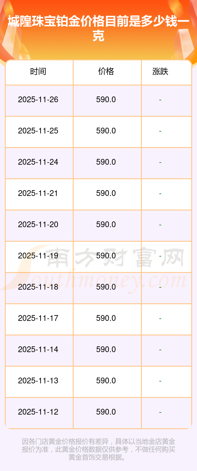 590.0元/克成為城隍珠寶今日 鉑金價格的最新交易的價格。