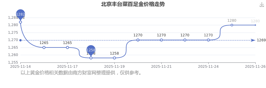 今日北京豐臺(tái)菜百足金價(jià)格為1280.0元/克。