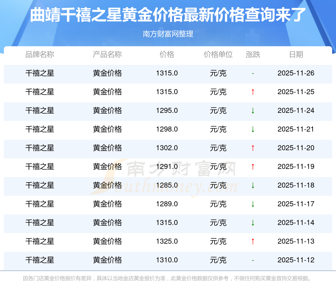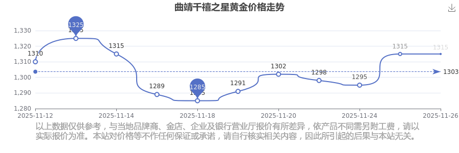 1315.0元/克,這是曲靖千禧之星于 2025年11月26日所定的黃金價(jià)格。
