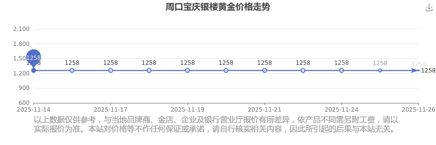 周口寶慶銀樓的黃金價格在今日(2025年11月26日),每克售價為1258.0元/克。