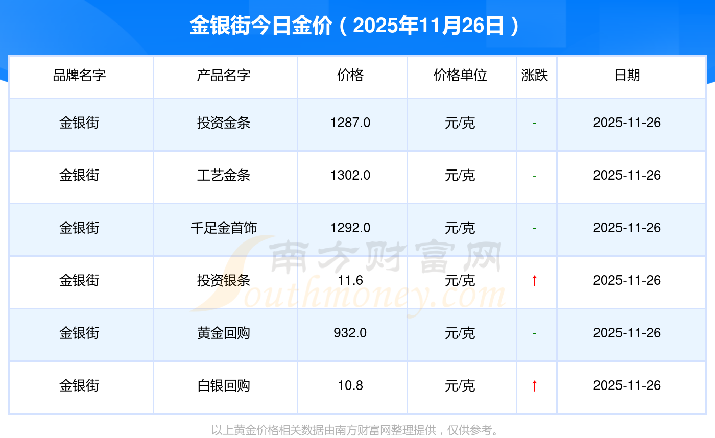 2025年11月26日金銀街今日價格:金條金價(內(nèi)地)1155.0元/克,黃金價格1312.0元/克,鉑金價格624.0元/克,黃金價格1312.0元/克,鉑金價格624.0元/克,黃金價格1315.0元/克,鉑金價格600.0元/克,黃金價格1258.0元/克,鉑金價格368.0元/克,黃金價格1149.0元/克,鉑金價格489.0元/克。