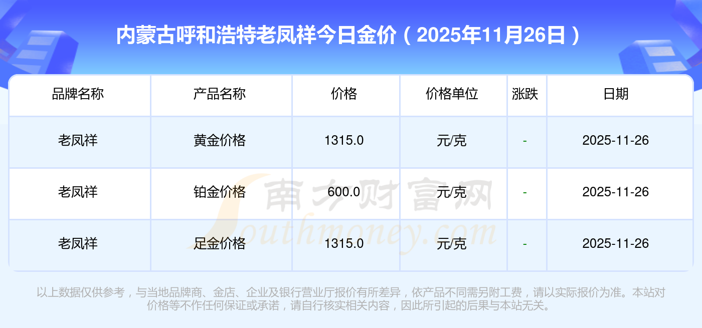 內(nèi)蒙古呼和浩特老鳳祥金價今日價格:金條金價(內(nèi)地)1155.0元/克,黃金價格1312.0元/克,鉑金價格624.0元/克,黃金價格1312.0元/克,鉑金價格624.0元/克,黃金價格1315.0元/克,鉑金價格600.0元/克,黃金價格1258.0元/克,鉑金價格368.0元/克,黃金價格1149.0元/克,鉑金價格489.0元/克。