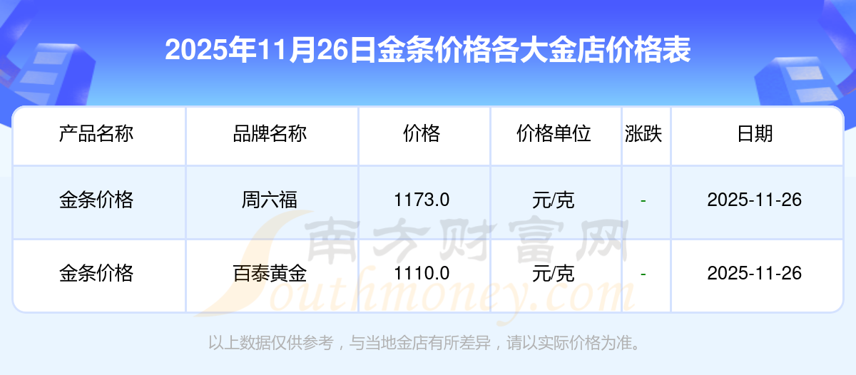 各大金店金條價(jià)格最新價(jià)格來了,2025年11月26日各大金店金條價(jià)格多少錢一克,一起來看看吧!