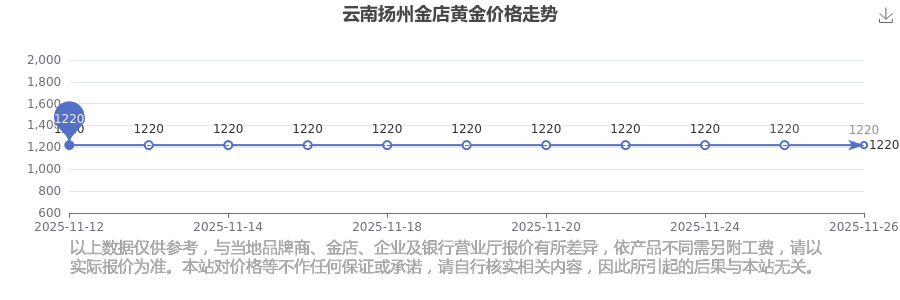 2025年11月26日,云南揚(yáng)州金店黃金價(jià)格每克的價(jià)值量定格在1220.0元/克。