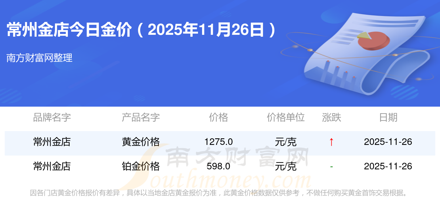 現(xiàn)在常州金店黃金價格是多少錢1克_2025年常州金店今日金價是多少錢一克,最新常州金店查詢,2025年11月26日常州金店鉑金價格現(xiàn)在每克多少錢?最新常州金店鉑金價格報價公布,一起來看看吧!